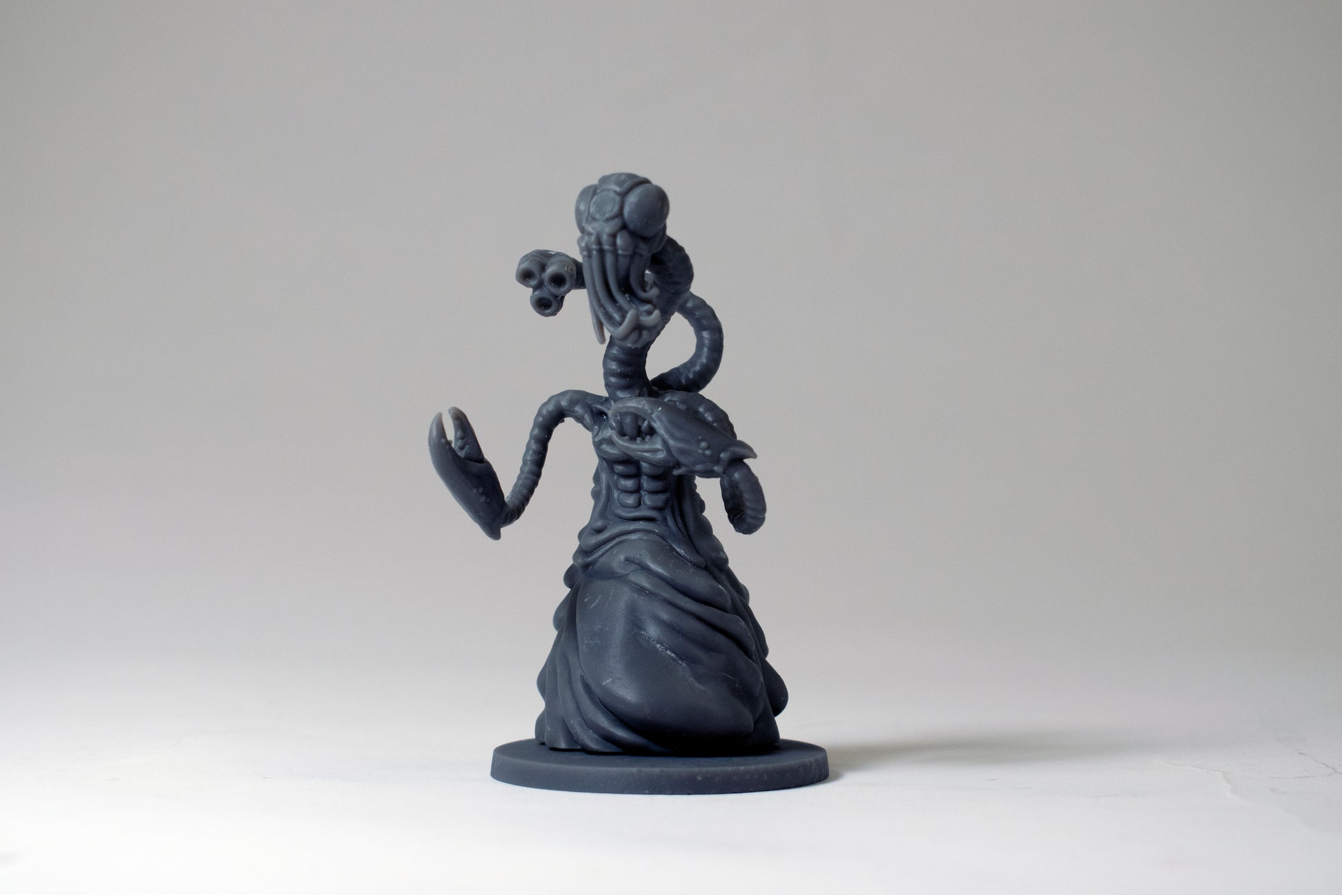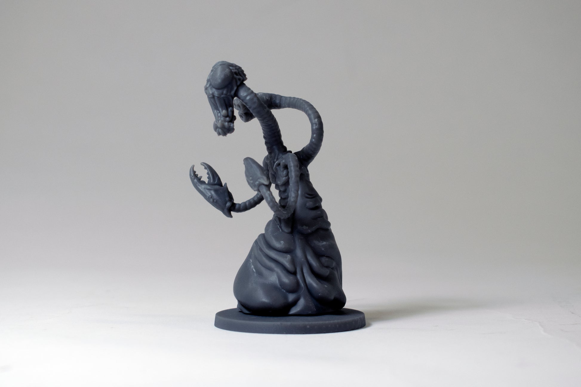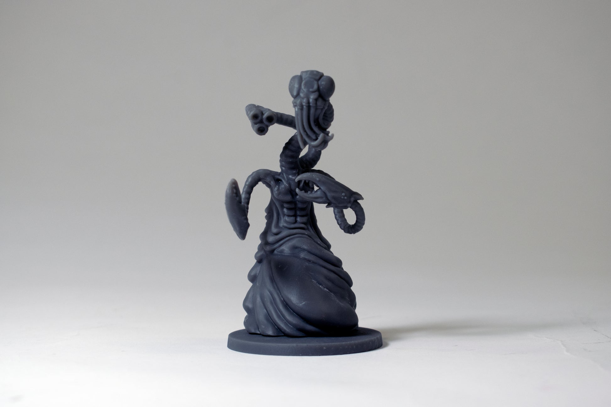 This model consists of 1 Yithian and 1 Base and comes unassembled and unpainted. We recommend that you use superglue (following the manufacture's safety procedures) to attach the model to the base. It has been 3D printed using a semi-rigid modelling resin. This means that the model compares favourably to the impact resistant of injection moulded model kits and is far less brittle than traditional resin 3D prints. All the models have had their supports removed and have been post cured making them ready to be glued onto the base and painted; however, if you wish to remove any additional artifacts from the manufacturing process or model and kit-bash your model, it can be cut and scraped with a craft knife just like a styrene model. If you are to sand or file the model we do recommend that you wear respiratory protection and do so in a well-ventilated area.